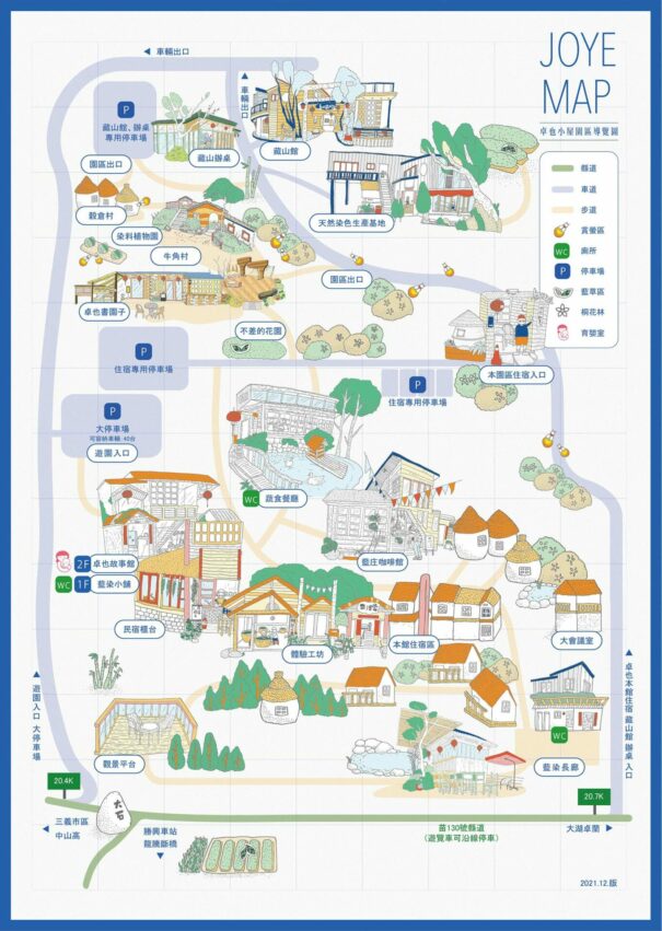 卓也小屋度假園區位於苗栗縣三義鄉,這座城市在2016年時獲得「國際慢城」認證,因此卓也小屋也以慢城概念為起點,希望無論是一人獨旅還是和情侶家人朋友一起,在這裡都能讓身心靈好好休息,放鬆體驗客家文化、體驗永續的意義。因此,卓也小屋渡假園區提供多元化的服務,像是藍染DIY、藍染商品小舖、特色餐廳與咖啡廳,以及住宿環境等,在這裡玩上一兩天都綽綽有餘。隱身在三義山中的卓也小屋,延著小徑往前直行,漸漸映入眼簾的是穀倉造型及古色古香的木造房舍、兩側還有鴨鵝悠遊的小湖畔,彷彿到了另一個世外桃源。